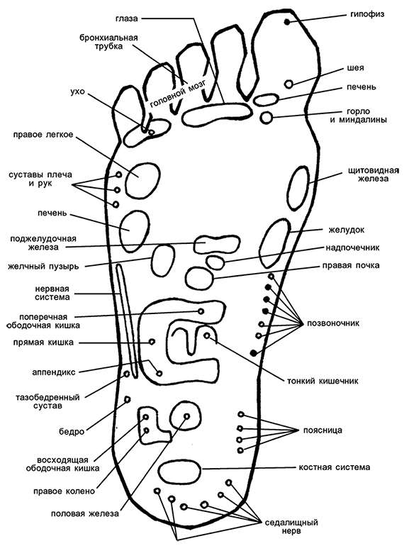 Схема связи правой ступни с органами и системами (по Л. Г. Пучко, 2002)