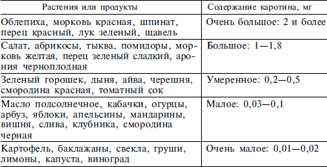 Содержание каротина (провитамина А) в 100 г продукта или съедобной части растения