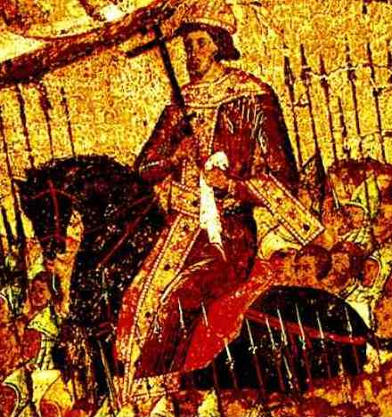 Рис. 22. 19 июля 1096 г. князь Владимир Мономах у Переяславля разбил половцев, в сражении убит половецкий князь Тугоркан. Иллюстрация – Владимир Мономах на фрагменте иконы около 1560 г.