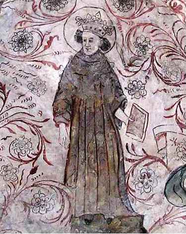 Рис. 40. 18 декабря 1290 г. в возрасте 50 лет умер конунг (король) Швеции Магнус I Ладулос. Провозласил в Швеции земский мир, и навсегда отменил древний обычай кровной мести, а также отменил обязанность у крестьян предоставлять бесплатный постой и пропитание для знати, за что и получил прозвище "Ладулос" – "Амбарный замок". Иллюстрация – конунг Магнус Ладулос – фреска в кирхе в Оверсело.