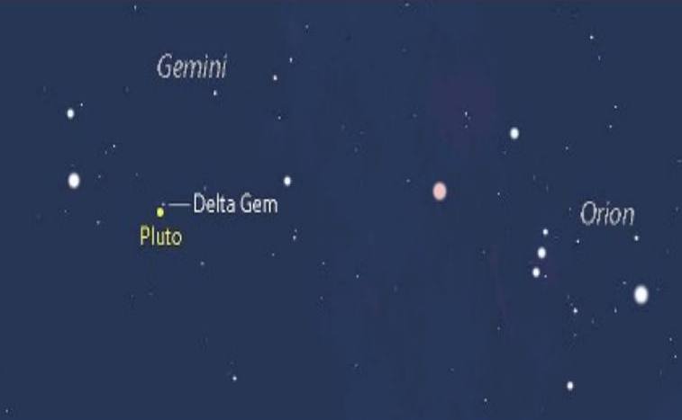Рис. 13. 18 февраля 1930 г. Клайд Томбаг – 24-летний американский астроном из обсерватории Лоуэлла в Флагстаффе, Аризона, у звезды Васат – Дельты Близнецов – открыл новую 9-ю планету – Плутон. На рисунке карта звездного неба в конце января 1930 г.