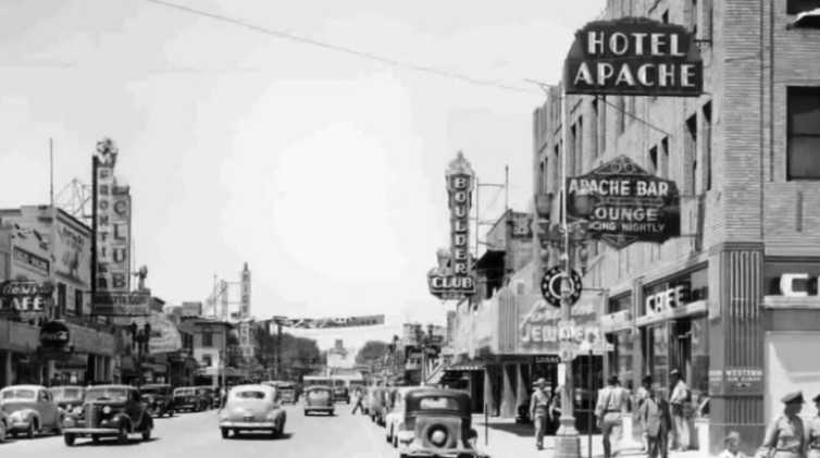 Рис. 17. 19 марта 1931 г. в штат Невада, США, были легализованы азартные игры. Вскоре была выдана 1-я игровая лицензия, денежки потекли в казну, налоговые поступления повысились в 2 раза, экономика штата была спасена. Все понимали, что Невада «качает» в казну деньги «темного» происхождения, но чиновники помнили великую «экономическую» фразу римского императора Веспассиана, жившего на заре Новой эры,– «деньги не пахнут!». На кадре из кинохроники будущий «город грёз» скромный и тихий невадский городок Лас-Вегас в 1931 г.