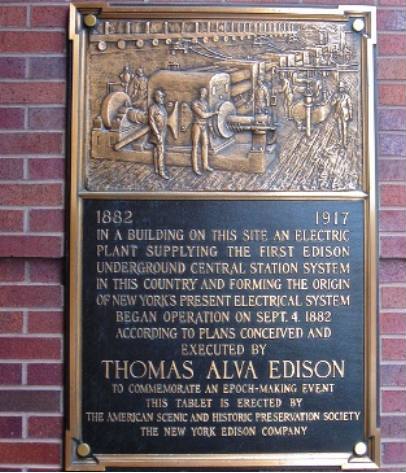 Рис. 20. 18 октября 1931 г. В Нью-Джерси в возрасте 84 года умер Томас Эдисон – самый крупный американский изобретатель, обладатель 1099 американских патентов и более 3000 иностранных патентов в 34 странах мира. Великий выдумщик Эдисон, однако, очень жестко относился к своим собратьям – изобретателям. Эдисон старался никого не допускать на рынок Америки, он опирался на богатую электрическую компанию, и вел грандиозное судебное преследование изобретателей и производителей, которые мешали его бизнесу. Часто это мешало прогрессу, а не помогало. Назову только две фамилии – Тесла и братья Люмьер. Первому Эдисон мешал внедрять более прогрессивное электроснабжение переменным током, а вторые добровольно перестали работать в Америке в 1897 г. Рынок кинематографии Америки Эдисон путем судов и претензий застопорил на 10 лет – с 1898 по 1908 гг., при этом авторство Эдисона в области кино, вполне очевидно, было сомнительным – все решали деньги. Увы, величайший изобретатель Эдисон был и величайшим борцом с другими изобретателями. На фото памятная доска на здании электростанции, с которой впервые в мире 4 сентября 1882 г. было подано постоянное напряжение 110 В, для освещения с помощью ламп Эдисона 59 магазинов на Манхэттене в Нью-Йорке.