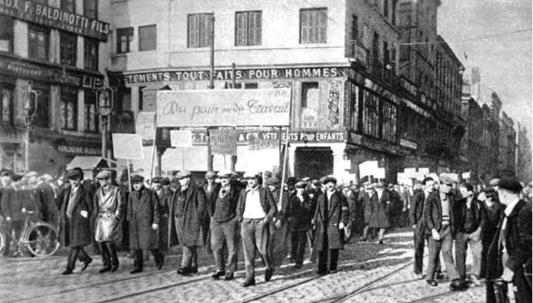 Рис. 23. 19 июля 1932 г. «Великая депрессия», которая с начала года перешла границы США и расползлась по всему миру, сделала последний шажок вниз: индекс Доу Джонс был 18 июля 45,60, и стал 19 июля 44,50. Но 20 июля биржевой тренд сменился – индекс шагнул вверх и восстановил позицию 18 июля – 45,60, 29 июля он дополз до 54,70. Это было очень мало, но оздоровление экономики продолжилось и далее. На фото демонстрация безработных в Париже, июль 1932 г.