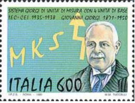 Рис. 24. 17 сентября 1932 г. в интересах ускорения индустриализации в СССР была введена метрическая система мер. В этот день 17 сентября 1932 г. было принято Постановление ЦИК и СНК СССР «О мерах и весах». Установлено, что на территории СССР применяется международная метрическая система мер (MKS): метр – килограмм – секунда. Секунда в России применялась и до этого, вместо дюйма и линии стали применять миллиметры, но дюйм и сегодня свою позицию уступил не везде. В 2025 г. в России система мер MKS действует в виде системы Си (с 1960 г.), которая в 1901 г. была в основном предложена итальянским физиком Джиорджи. На итальянской марке основатель метрической системы единиц MKS – Си Джованни Джиорджи.