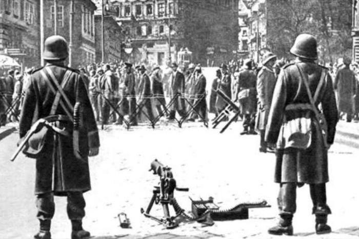 Рис. 26. 19 мая 1933 г. в Австрии запретили членам НСДАП носить мундиры, и вскоре последовал роспуск этой партии в Австрии. Канцлер Австрии Энгельберт Дольфус проводил в жизнь репрессивные меры против всех – и против социал-демократов, и против социалистов и против национал-социалистов. Фашистом он явно не был – это был простой австрийский реакционер. Но возрастающую силу фашизма Дольфус оценивал здраво – и он не ошибся – фашистское чудовище сожрало и Австрию. На фото австрийская армия на улицах Вены 1 мая 1933 г. препятствует проведению демонстрации трудящихся .
