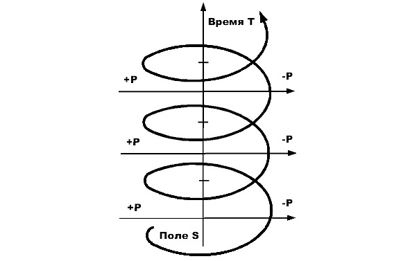 Силовые линии потенции пронизывают нашу Вселенную в ортогональном по отношению ко времени T и оси движения поля S направлении.