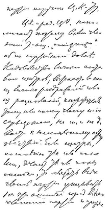 Товарищи! В ответ на Ваш запрос, согласны ли мы опубликовать свои имена в протоколах II съезда, уведомляем Вас, что мы с своей стороны решительно ничего против этого не имеем, но не берем на себя решить, насколько это допустимо по конспиративным соображениям в интересах наших товарищей в России. Решение этого вопроса о конспиративности зависит от подлежащей партийной инстанции.
