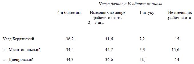 Следовательно, в Таврических уездах полное тягло требует наличности не менее 4-х штук рабочего скота во дворе.