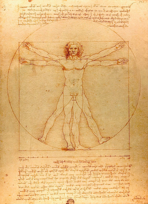 Леонардо да Винчи. Канон пропорций мужской фигуры по Витрувию. 1492