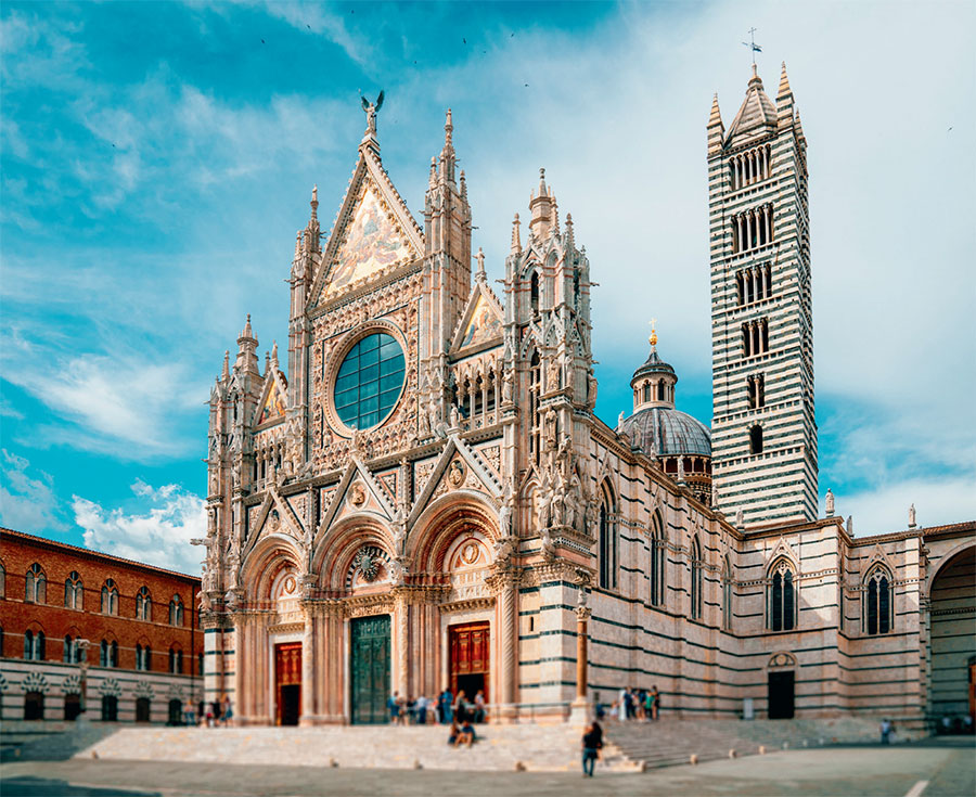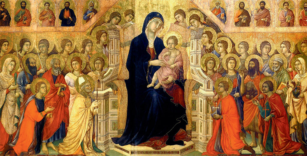 Для сиенского Дуомо была исполнена и одна из самых замечательных алтарных композиций Проторенессанса – знаменитая «Маэста» («Величие»). Перенос ее в храм после окончания длительного процесса создания этого произведения церковного искусства отмечался в 1311 году как общегородской праздник. Поистине величественный алтарный образ (ныне он хранится в музее собора), прославляющий Мадонну – покровительницу города, является работой Дуччо ди Буонинсенья, считающегося основателем сиенской школы живописи XIV столетия. В деятельности представлявших ее мастеров историки искусства справедливо усматривают антитезу реалистическим завоеваниям Джотто, что проявилось в стремлении сохранить значительную долю средневековой условности в изображениях как основных персонажей, так и среды, в которую их помещали художники. В произведениях Дуччо, в том числе и в «Маэста», сильна традиционная основа, восходящая к византийской религиозной живописи; но вместе с тем мастер дает почувствовать в образах своих героев свойственное только им лирическое, поэтическое начало – особенность, которая получит убедительное развитие в творческой деятельности сиенских художников следующих поколений, прежде всего Симоне Мартини и Амброджо Лоренцетти.