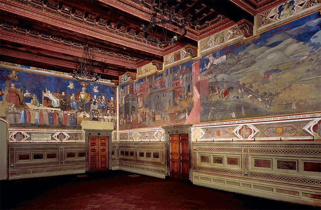 Палаццо Публико в Сиене. Зал Совета девяти с фресками Амброджо Лоренцетти