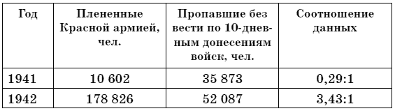 В-четвертых, сведения 10-дневных донесений войск о пропавших без вести солдат вермахта совершенно не стыкуются с официальными данными о численности немецких военнослужащих, взятых советскими войсками в плен, что демонстрирует табл. 1.5.