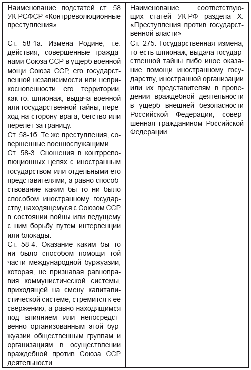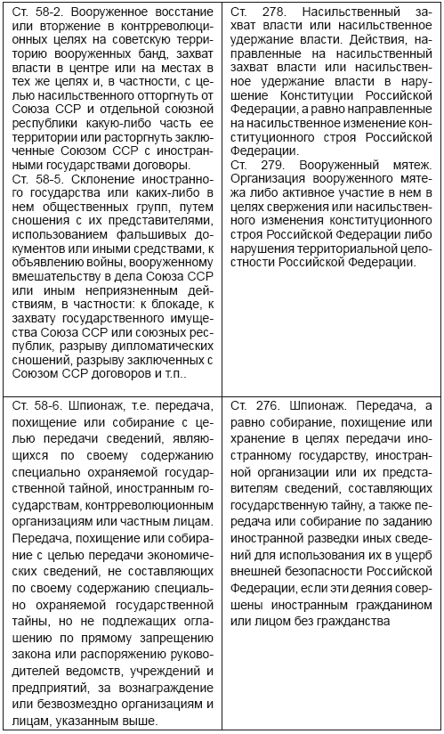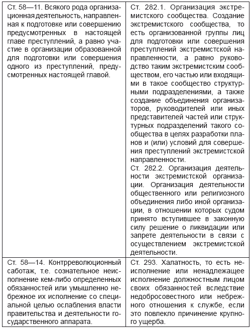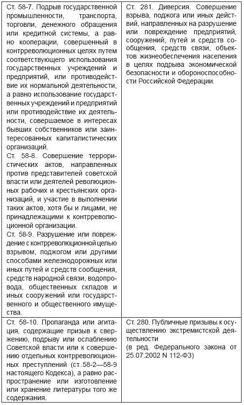 Таблица 2.3. Соответствие статей УК РСФСР (на 01.06.1938 г.) и УК РФ (на 14.02.2008 г.)