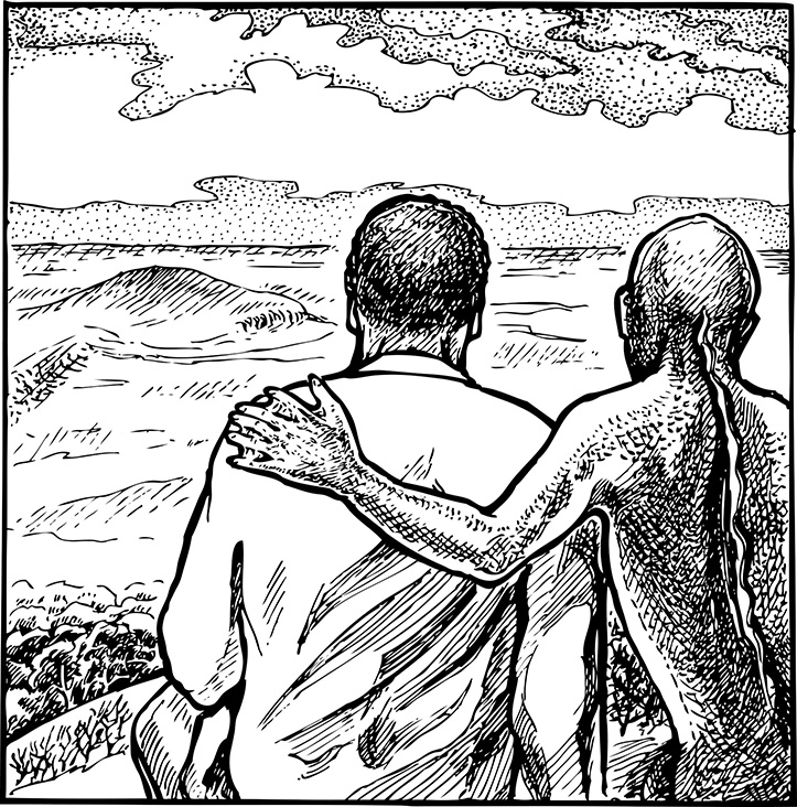 Забыв о вражде, мы понемногу учились понимать язык друг друга. Та встреча, несомненно, изменила нас обоих. Желание выжить и спастись оказались сильнее всех преград. Исследовав повреждения обоих аппаратов, мы решили вместе восстанавливать мой корабль, используя часть механизмов от его челнока.