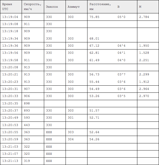 Попробуем дать этому вполне правдоподобное объяснение, правда, чертовщиной всё-таки попахивает. Дело в том, что в районе Енакиево пропал сигнал транспондера, и с 13:18 до 13:21 (3 минуты) вторичный радар Усть-Донецка повторял последнюю информацию от транспондера по высоте полёта Боинга, то есть – FL330. А потом он стал выдавать крестики да палочки. Чертовщиной-то попахивает потому, что потерю сигнала транспондера от Боинга в 13:18 никто официально не признал.