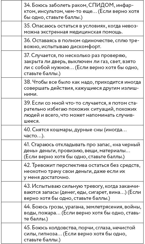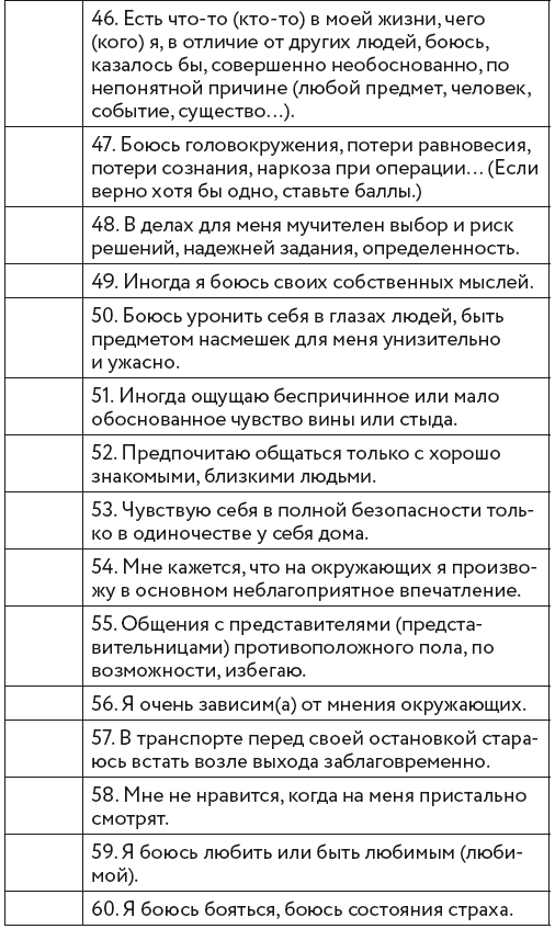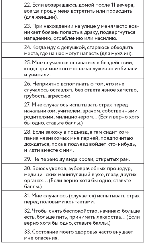 Возможно, у вас есть и страхи, не охватываемые этим тестом. Приплюсуйте себе за них баллы сами, если хотите.