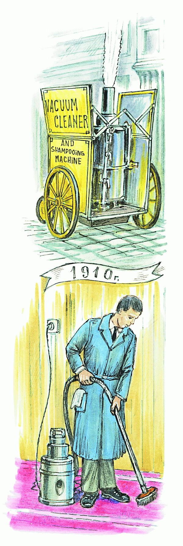 И всё-таки пылесос должен был стать портативным, домашним. Такую возможность ему дали компактные, но достаточно мощные электродвигатели. И уже в начале XX века, когда по Лондону продолжал ездить пылесос, впряжённый в пару лошадей, одна за другой стали появляться конструкции домашних пылесосов.