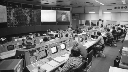 Начальник смены ЦУПа ушел, оставив высокопоставленных гостей одних.