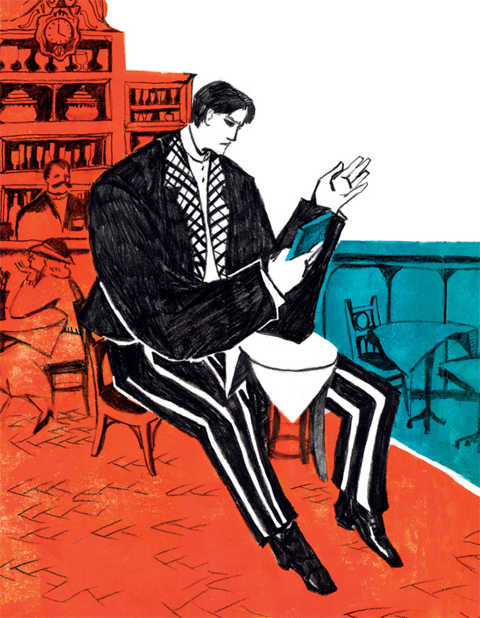 Ах, зачем это,откуда этов светлое веселогрязных кулачищ замах!Пришлаи голову отчаянием занавесиламысль о сумасшедших домах.И –как в гибель дредноутаот душащих спазмбросаются в разинутый люк –сквозь свойдо крика разодранный глазлез, обезумев, Бурлюк.Почти окровавив исслезенные веки,вылез,встал,пошели с нежностью, неожиданной в жирном человеке,взял и сказал:«Хорошо!»Хорошо, когда в желтую кофтудуша от осмотров укутана!Хорошо,когда брошенный в зубы эшафоту,крикнуть:«Пейте какао Ван-Гутена!»И эту секунду,бенгальскуюгромкую,я ни на что б не выменял,я ни на…А из сигарного дымаликерною рюмкойвытягивалось пропитое лицо Северянина.Как вы смеете называться поэтоми, серенький, чирикать, как перепел!Сегоднянадокастетомкроиться миру в черепе!Вы,обеспокоенные мыслью одной –«изящно пляшу ли», –смотрите, как развлекаюсья –площаднойсутенер и карточный шулер!От вас,которые влюбленностью мокли,от которыхв столетия слеза лилась,уйду я,солнце моноклемвставлю в широко растопыренный глаз.Невероятно себя нарядив,пойду по земле,чтоб нравился и жегся,а впередина цепочке Наполеона поведу, как мопса.Вся земля поляжет женщиной,заерзает мясами, хотя отдаться;вещи оживут –губы вещинызасюсюкают:«цаца, цаца, цаца!»Вдруги тучии облачное прочееподняло на небе невероятную качку,как будто расходятся белые рабочие,небу объявив озлобленную стачку.Гром из-за тучи, зверея, вылез,громадные ноздри задорно высморкал,и небье лицо секунду кривилосьсуровой гримасой железного Бисмарка.И кто-то,запутавшись в облачных путах,вытянул руки к кафе –и будто по-женски,и нежный как будто,и будто бы пушки лафет.Вы думаете –это солнце нежненькотреплет по щечке кафе?Это опять расстрелять мятежниковгрядет генерал Галифе!Выньте, гулящие, руки из брюк –берите камень, нож или бомбу,а если у которого нету рук –пришел чтоб и бился лбом бы!Идите, голодненькие,потненькие,покорненькие,закисшие в блохастом грязненьке!Идите!Понедельники и вторникиокрасим кровью в праздники!Пускай земле под ножами припомнится,кого хотела опошлить!Земле,обжиревшей, как любовница,которую вылюбил Ротшильд!Чтоб флаги трепались в горячке пальбы,как у каждого порядочного праздника –выше вздымайте, фонарные столбы,окровавленные туши лабазников.Изругивался,вымаливался,резал,лез за кем-товгрызаться в бока.На небе, красный, как марсельеза,вздрагивал, околевая, закат.Уже сумасшествие.Ничего не будет.Ночь придет,перекусити съест.Видите –небо опять иудитпригоршнью обрызганных предательством звезд?Пришла.Пирует Мамаем,задом на город насев.Эту ночь глазами не проломаем,черную, как Азеф!Ежусь, зашвырнувшись в трактирные углы,вином обливаю душу и скатертьи вижу:в углу – глаза круглы, –глазами в сердце въелась богоматерь.Чего одаривать по шаблону намалеванномусиянием трактирную ораву!Видишь – опятьголгофнику оплеванномупредпочитают Варавву?Может быть, нарочно яв человечьем месивелицом никого не новей.Я,может быть, самый красивыйиз всех твоих сыновей.Дай им,заплесневшим в радости,скорой смерти времени,чтоб стали дети, должные подрасти,мальчики – отцы,девочки – забеременели.И новым рожденным дай обрастипытливой сединой волхвов,и придут они –и будут детей креститьименами моих стихов.Я, воспевающий машину и Англию,может быть, просто,в самом обыкновенном евангелиитринадцатый апостол.И ко