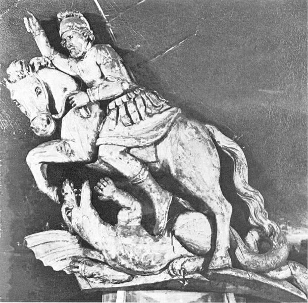Фрагмент кормового декора «Полтавы» в виде зеркально симметричных конных скульптур Георгия Победоносца Времена героев