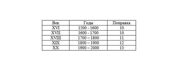 Кроме того, пересчет дней стал вестись с 1582 г., когда Рим перешел на Григорианский календарь, и эти новые поправки искусственно ввели расчет времени России в расчет времени европейских стран, но Россия перешла на Григорианский календарь только в 1918 г. Компьютерные астрологические и астрономические программы работают также.
