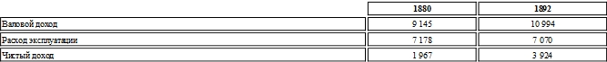 Вот финансовые результаты эксплуатации железных дорог на версту сети (в рублях):