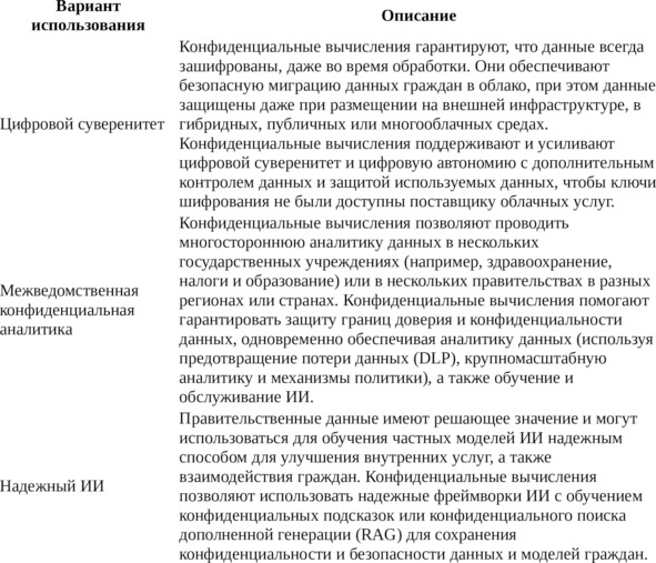 В следующей таблице описаны некоторые примеры использования конфиденциальных вычислений в государственном секторе.