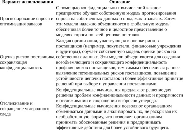 В следующей таблице описаны некоторые примеры использования конфиденциальных вычислений в цепочках поставок.