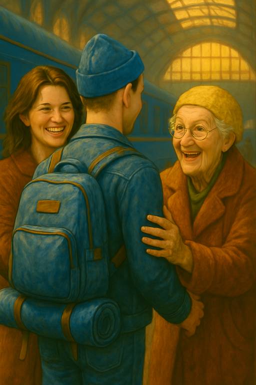 Когда поезд остановился на знакомом перроне Бишкека, холодный ветер встретил его, напоминая о родных местах. Выйдя на платформу, Влад увидел знакомые лица – бабушку и маму, которые ждали его с нетерпением.