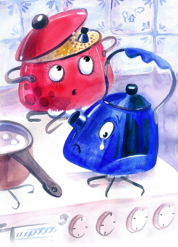 – Как же теперь быть? – огорченно вздыхал Чайник. – Ведь без свистка меня в доме никто не услышит. И Хозяин с Хозяйкой, и дети будут ждать за столом и удивляться, почему так долго не кипит вода. А как же я им смогу подать сигнал, если свисток куда-то исчез? Ну, право, не прыгать же мне с грохотом по плите, рискуя облить кипятком все вокруг?!