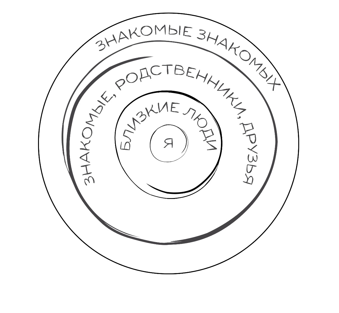 Самый простой и быстрый способ – это нарисовать на листке бумаги три круга – один внутри другого. В итоге, у вас выйдет маленький круг, вокруг него еще больше, и огибает это все третий, самый большой. Самый малый круг – это круг самого близкого окружения. Это ваша семья, девушка/парень, муж/жена, родители. Выпишите на листе бумаги список из этого круга окружения. С него лучше всего не начинать, а оставить его на экстренный случай.