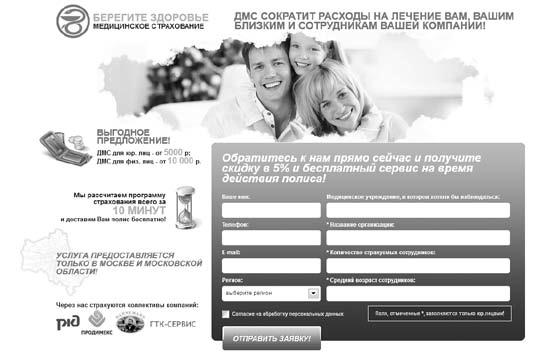 Что нужно предпринимателю, который интересуется дополнительным медицинским страхованием для своих сотрудников? Узнать, сколько это будет стоить в его случае. Пользуясь такой простой логикой, медицинский центр создал страницу захвата, где бизнесмен, оставив заявку, уже через 10 минут получит расчет.