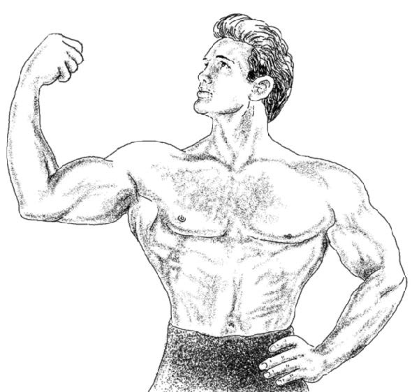 Не знаю, как вам, но лично мне телосложение Стива Ривза кажется более гармоничным. Что же касается редкостного сочетания размера и симметричности… Стив Ривз, например, считал идеальными такие пропорции тела бодибилдера: бицепс – 252 % окружности запястья; икры – 192 % окружности лодыжки; шея – 79 % окружности головы; грудь – 148 % окружности ягодиц; талия – 86 % окружности ягодиц; бедро – 175 % окружности колена.