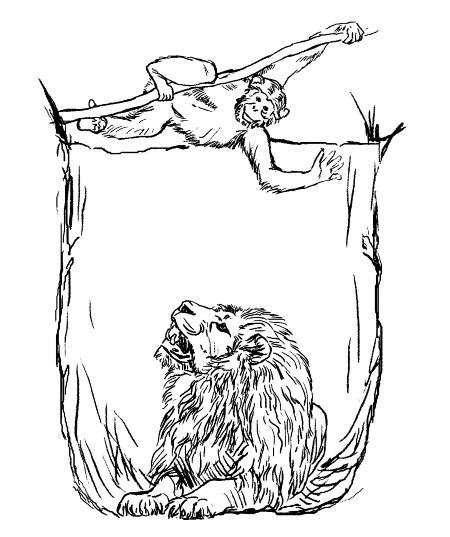 Лев однажды загулял,Долго по лесу блуждалИ попал в большую яму,Видит небо и на ветке обезьяну.Говорит лев обезьяне:– Вытащи меня из ямы,Помощи твоей я буду рад,Покажу тебе, где клад.Для тебя я буду крышей,Может, ты меня не слышишь?Обезьяна «гу» да «гу» и хохочет на ходу:– Кошка рыжая ты, Лёва,Слезать с ветки не готова.Я ещё здесь посижуИ от всей души скажу:Ты скорей не лев – козёлИли, может быть, осёл.Пропадёшь ты, лев, зазря,Хоть без тебя в лесу нельзя.Пригодится твоя шкураДля ковра и абажура,Ну а львица у тебя —Настоящая свинья.И вдруг ветка оборвалась,В яме обезьяна оказалась,На обезьяну лев был злой,Пасть раскрыл, мотая головой.Обезьяна задрожала: – Лев, постой.Хотела было я проститься,Но спустилась, не поверишь, извиниться.Выглядишь ты очень мило.Я – болтушка, я шутила.Лев открыл большую пастьИ задумался, как не пропасть:Не до шуток нам сейчас,Надо выбраться, слишком поздний час.Лев вздохнул и облизнулся,К обезьяне повернулся:– Если слово дашь ты мне,Помогу тогда тебе.Ветки будешь ты бросать,Льва на волю выпускать.Обезьяна завизжала,Льву от радости сказала:– Да я, да мы, конечно, всё сумеем,И выбраться мы к темноте успеем.Глаза у льва и злые, и упрямы,Но обезьяну выбросил из ямы.И ветки полетели вниз на дно,Она умела их бросать давно.По глубине так яма меньше стала,Обезьяна чувствует: устала.Вспомнил лев советы мамы,И прыжком он выбрался из ямы.– Обезьяна, я тебя прощаю.Даже где-то уважаю.И скажу своим, любя,Чтоб не трогали тебя.Давай лапу, в лес пойдем,Веселей идти вдвоём.Мораль сей басни такова:Подбирай с умом слова.С партнерами веди себя умело.Лучше смолчать для пользы дела.