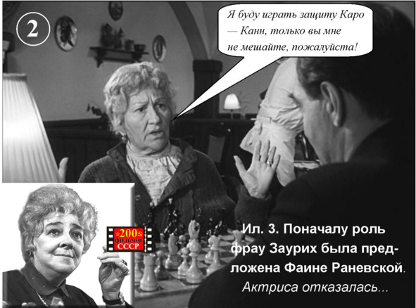 Кинематографическая легенда гласит: первая актриса, которой была предложена роль пожилой любительницы шахмат, была не кто иная как Фаина Георгиевна Раневская.
