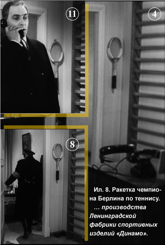 Судя по кадрам «Семнадцати мгновений…», офицер СС выиграл чемпионат Берлина по теннису, в годы правления фашистов, ракеткой, которая была выпущена на Ленинградской фабрике спортивного инвентаря.