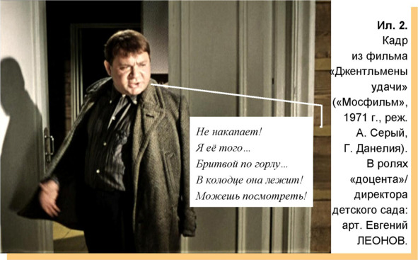 Помните? «Бритвой по горлу… В колодце она лежит!». Для зрителей 1971 года, когда и вышел лучший фильм Г. Данелия «Джентльмены удачи», было понятно выражение «бритвой по горлу»… Сегодняшнему, молодому, читателю и зрителю трудно представить: как это можно убить человека приспособлением для бритья волос? Станки для бритья так и сделаны, чтобы ни в коем случае не порезаться при бритье. Разве что подростковый прыщик срезать – но это не смертельно.