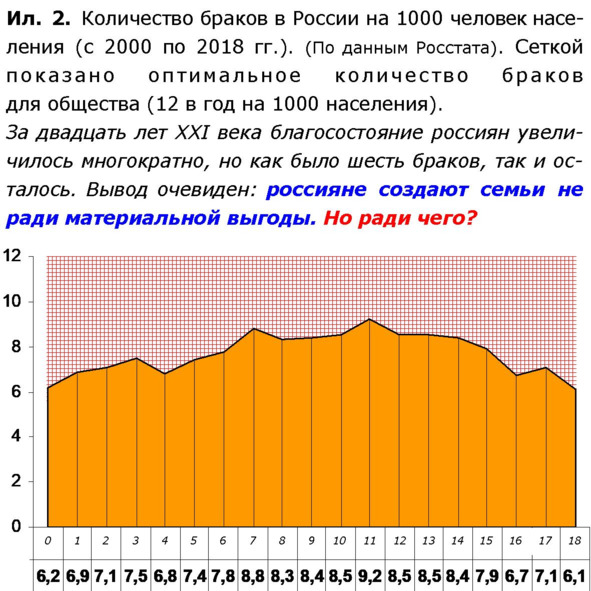 Заметим, с точки зрения автора этой книги, именно 12 браков на 1000 населения в год – и есть оптимальный «результат» общения парней и девушек в стране.