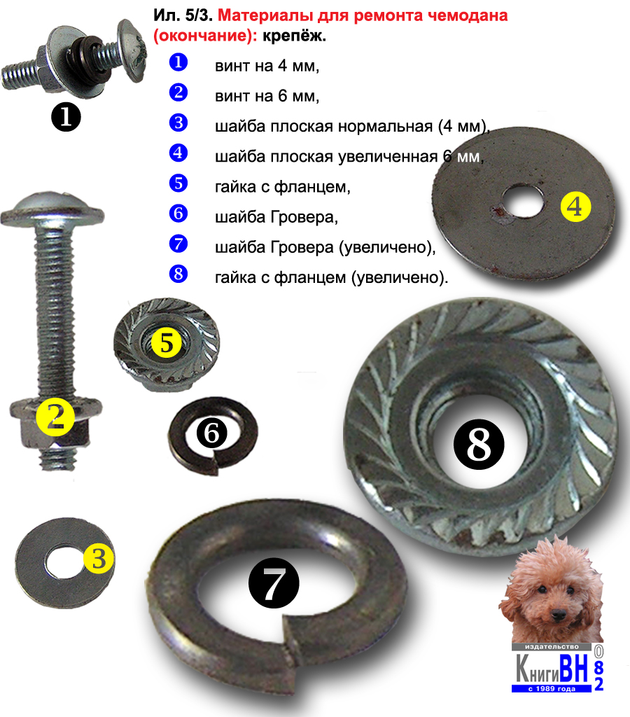 3. Шайбы плоские нормальные: на 4 мм (8-12 шт.) и 6 мм (6-8 шт.)