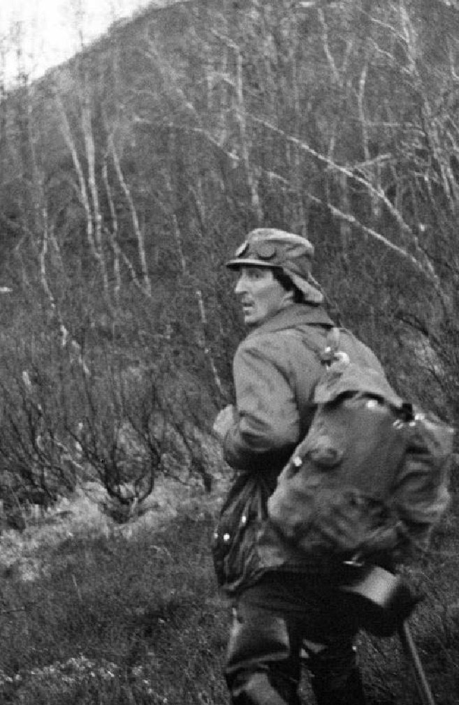 – …сто метров … трубка … нуп … без ружья не выйдешь… следы…