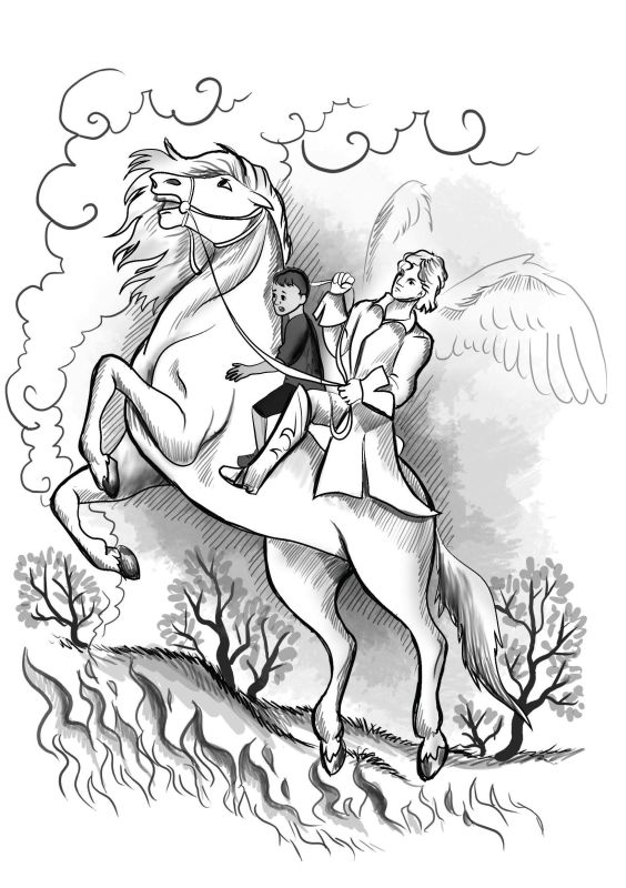 Всадник ничего не ответил. Только Кеша увидел в его очах голубой свет, свет добра. Всадник ссадил мальчугана на чёрную землю, по которой пронёсся пал, и молвил:
