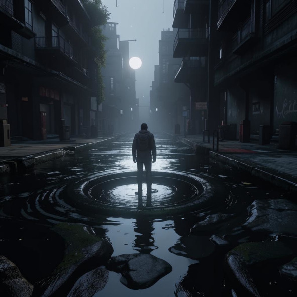 Запах исходил от тёмного пятна, появившегося посреди мокрого асфальта. Секунду назад его ещё не было. Пятно напоминало большую лужу разлитых чернил, но не в виде бесформенной кляксы, а в виде аккуратно очерченной, идеально ровной окружности.