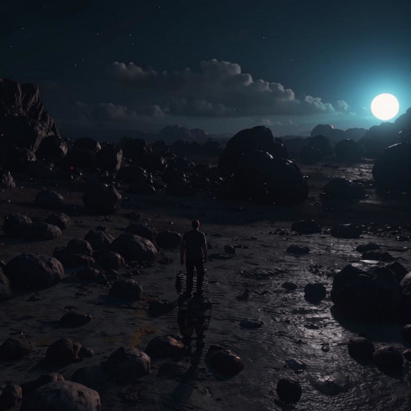 Миг – и всё пришло на круги своя. Чёрные, круглые камни и чёрное, беспросветное небо, которое, несмотря на кажущуюся непроглядную черноту, всё же каким-то образом освещало поверхность земли. Чёрный свет… немыслимо.