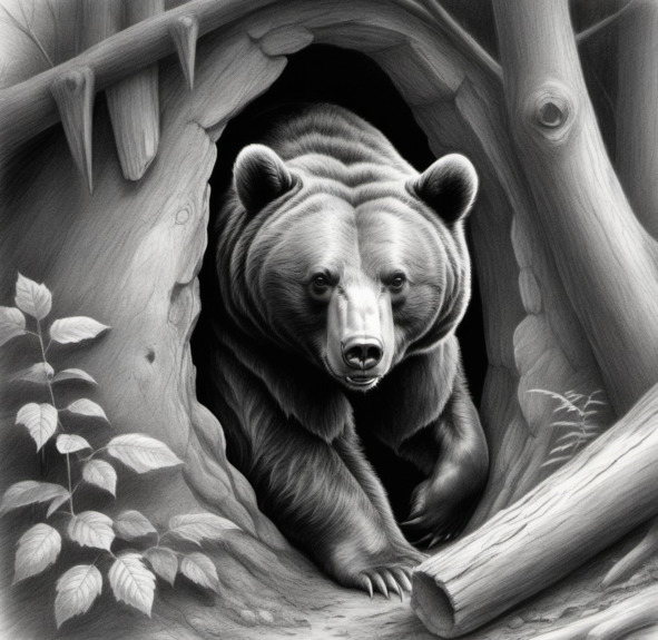 Медведь, очнувшись от долгой зимней спячки, с трудом ворочался в берлоге. Он сердито рыл лапой талый снег, который вперемешку с ветками, шишками, листьями и другим лесным мусором спрессовался в грязную плотную массу. Медведь глухо ворчал на собственную неуклюжесть в этом громоздком теле. Наконец, он проделал достаточно широкое отверстие и выбрался наружу.