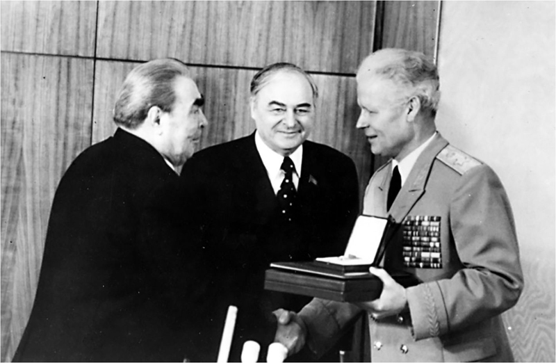 Награждение генерала армии В. А. Матросова Звездой Героя Советского Союза в Георгиевском зале Кремля Генеральным секретарём ЦК КПСС Л. И. Брежневым, 27 февраля 1982 г.