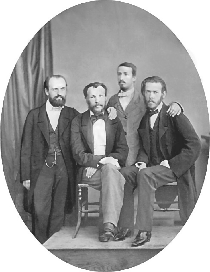 Young Russian scientists-chemists. From left to right: N. Zhitinsky, D. I. Mendeleyev, A. P. Borodin, V. I. Olevinsky, I. O. Heidelberg. 1860