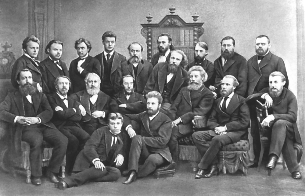 Since 1878 meetings of painters and scientists, which were named later the “Mendeleyev’s Wednesdays”, started taking place at Mendeleyev’s apartment: “There were constantly present all the Wanderers – Kramskoy, Repin, Yaroshenko, Myasoedov, Kuznetsov, Savitzky, Vl. Makovsky, P. K. Klodt, Maksimov, the Vasnetsovs, Surikov, Shishkin, Quindji, Kiselev, Ostrouhov, Volkov, Pozen, Lemoch, Prahov and Mihaltseva. Among the University professors there were more often than others Beketov, Menshutkin, Petrushevsky, Inostrantsev, Wagner, Voyeikov and Kraevich… They came to the “Wednesdays” without any special invitations.”