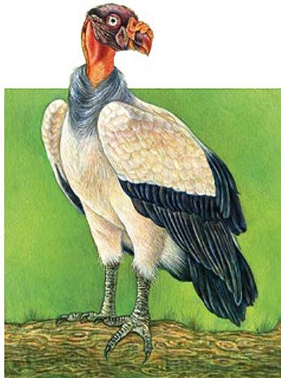 Самый пёстроокрашенный гриф. Ярко-красная голова и красочный кожистый нарост, или гребень, у основания клюва. Шея и голова без перьев, чтобы не заводились микробы, размножающиеся в падали. Солнце убивает бактерии, опаляя голову и клюв стервятника.