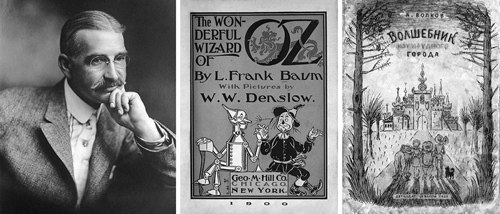 Лаймен Фрэнк Баум (1856–1919) родился в городке Читтенаго, штат Нью-Йорк. Был актером, журналистом, разводил кур, женился на феминистке. Свою знаменитую книгу, созданную в соавторстве с иллюстратором Уильямом Денслоу, он издал в 1900 году, после чего написал еще много других книг, где действие тоже происходит в стране Оз. Название страны, как он объяснил позднее, произошло от этикетки одного из его каталожных ящиков: O–Z.